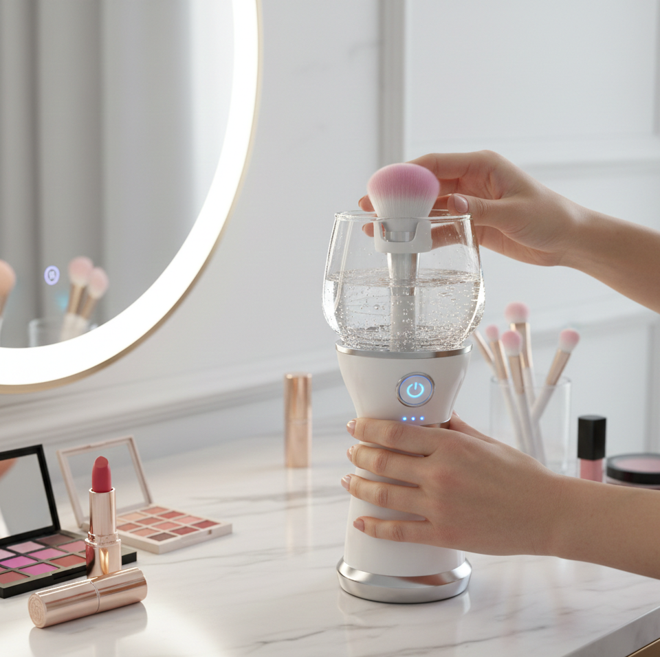 The Automatic Makeup Brush Cleaner & Dryer is a must-have beauty tool for anyone who uses makeup regularly. This smart device removes makeup residue, oil, and bacteria from your brushes quickly and efficiently, helping maintain hygiene and extend brush life.